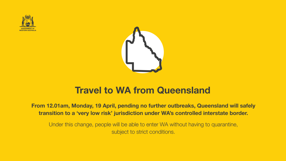 Mark Mcgowan On Twitter Subject To No Further Community Cases Queensland Will Transition To Very Low Risk From 12 01am On Monday 19 April 2021 Under This Change Arrivals From Queensland Will No